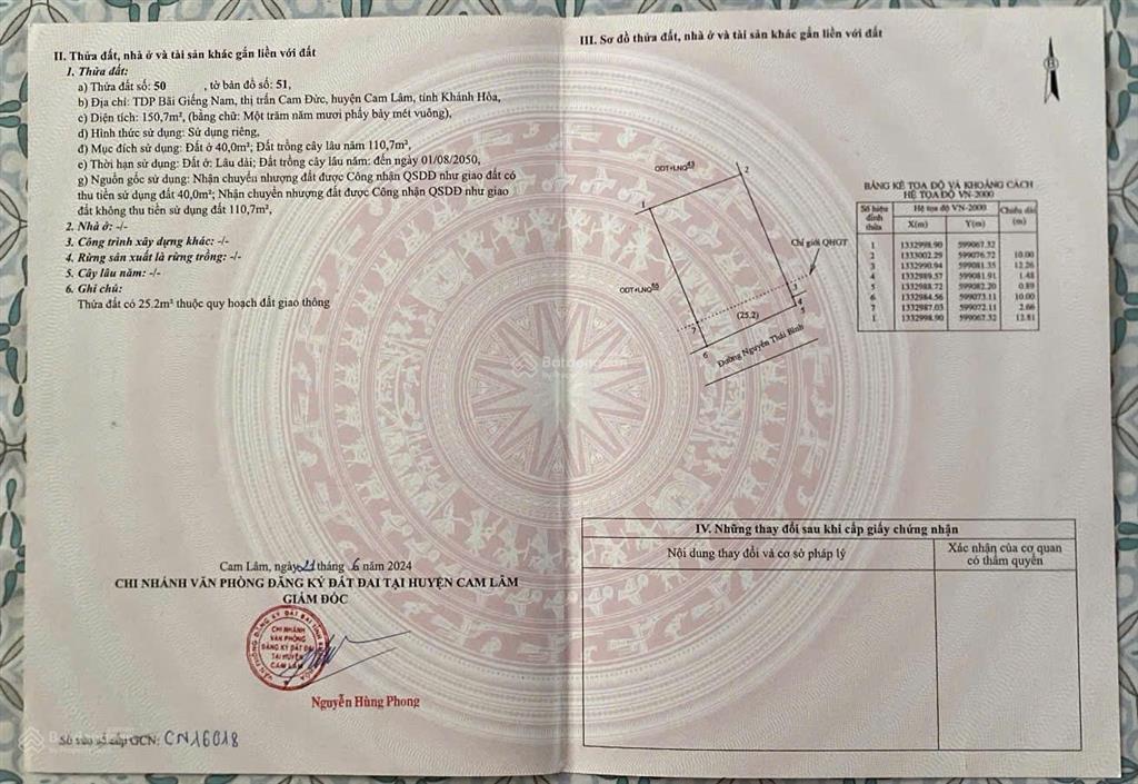 - Diện tích: 150m² (40m² thổ cư).