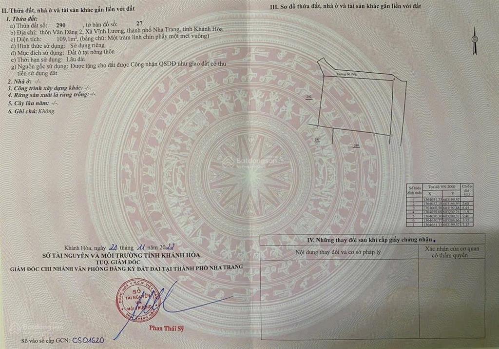 Đất nền tại Vĩnh Lương, Nha Trang, Khánh Hòa, với diện tích 109,1 m², đang được chào bán với giá 2,5 tỷ VND.