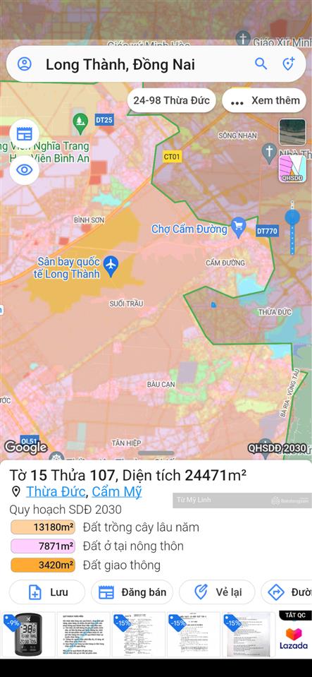 Bán gấp 69,784m2~7 ha có 600m² thổ cư xã Thừa Đức, Cẩm Mỹ, Long Thành Đồng Nai.