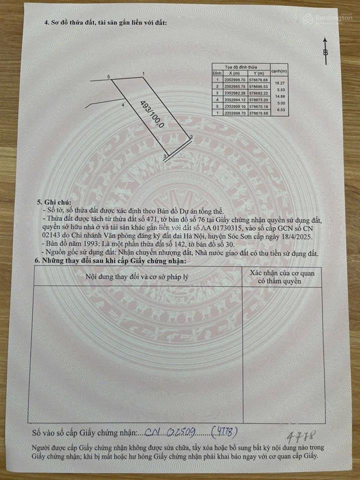 Đất thổ cư có diện tích 100m² tại Xã Minh Phú, Sóc Sơn, Hà Nội.