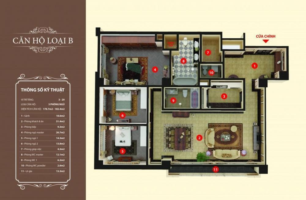 - Căn hộ này bao gồm 3PN + 3WC + phòng khách và khu sinh hoạt chung lớn, đem lại sự thuận tiện và thoải mái cho gia đình.