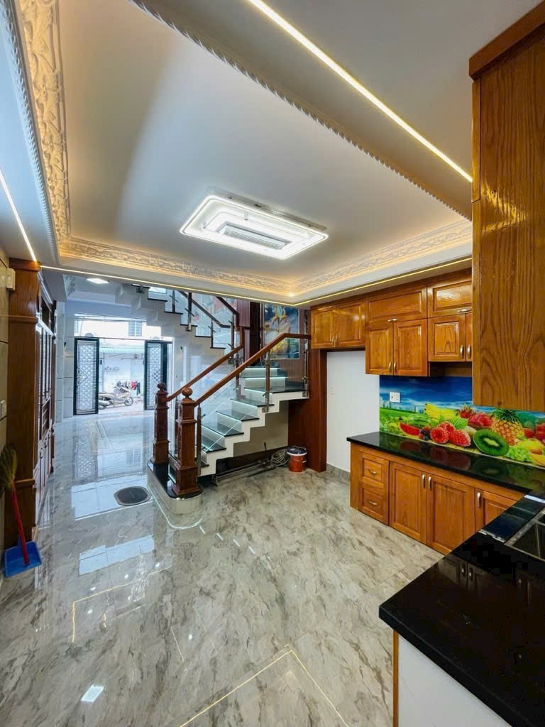 Kết cấu: trệt, lửng, 3 lầu, 6PN, 6WC, phòng thờ – thiết kế hiện đại
