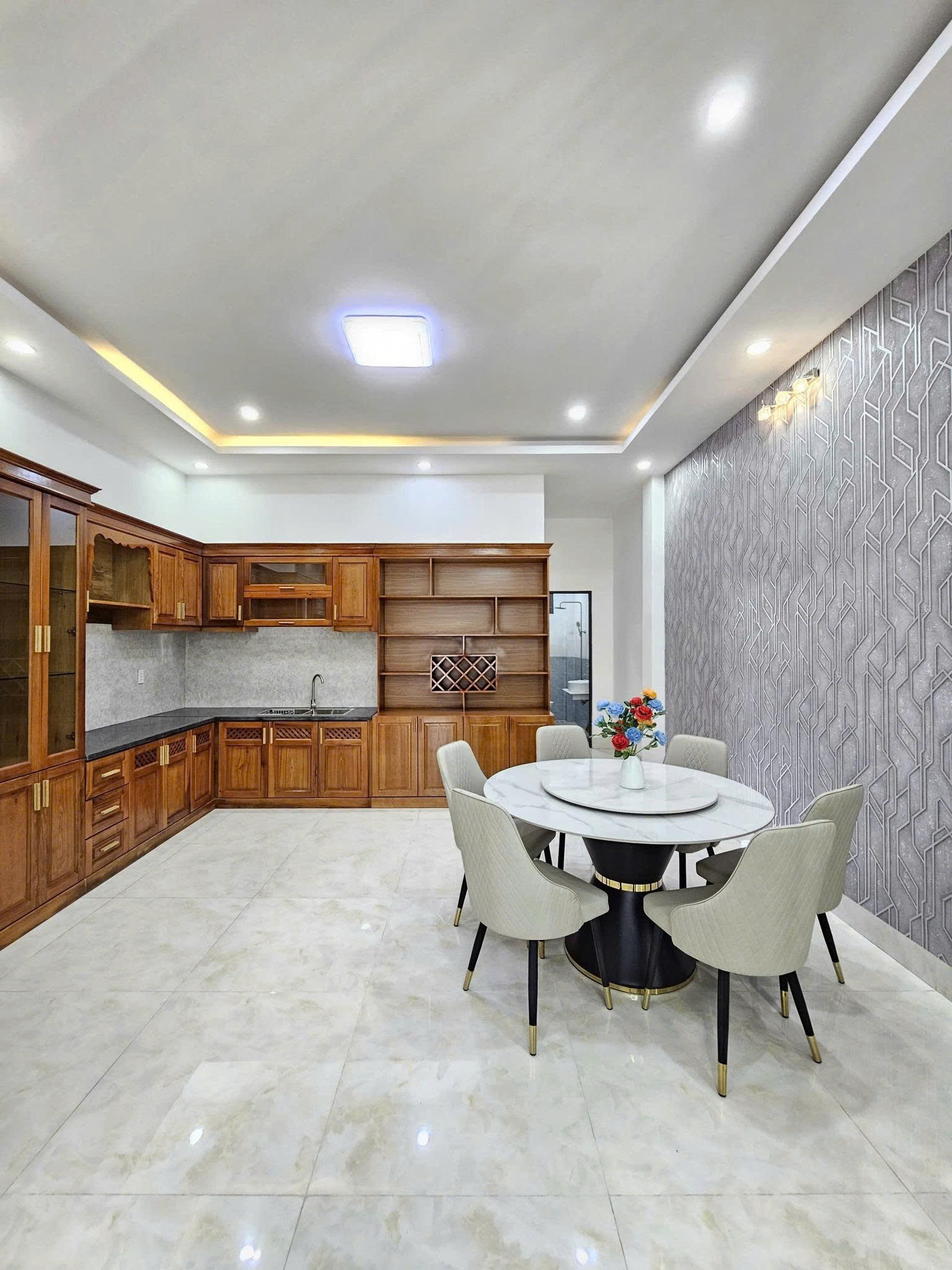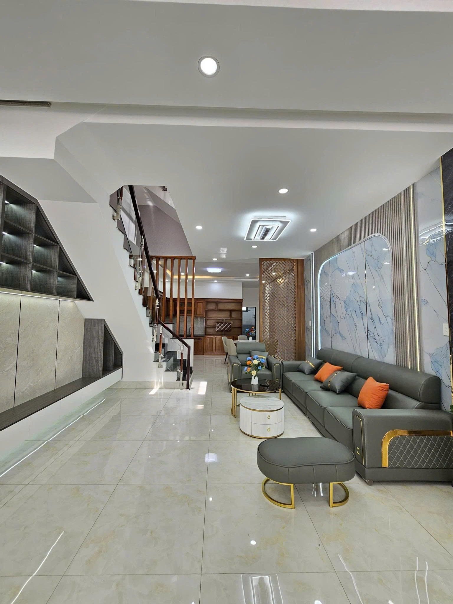 - Kết cấu ngôi nhà gồm 1 trệt + 2 lầu, có 1 phòng (khách, bếp, giặt, thờ), 3 phòng ngủ và 4 nhà vệ sinh.