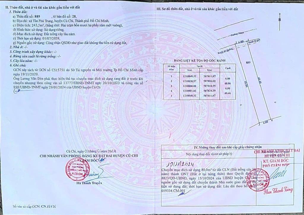 Tổng diện tích: 243.5m² (Ngang 6m), hiện đã có sẵn 80m² thổ.