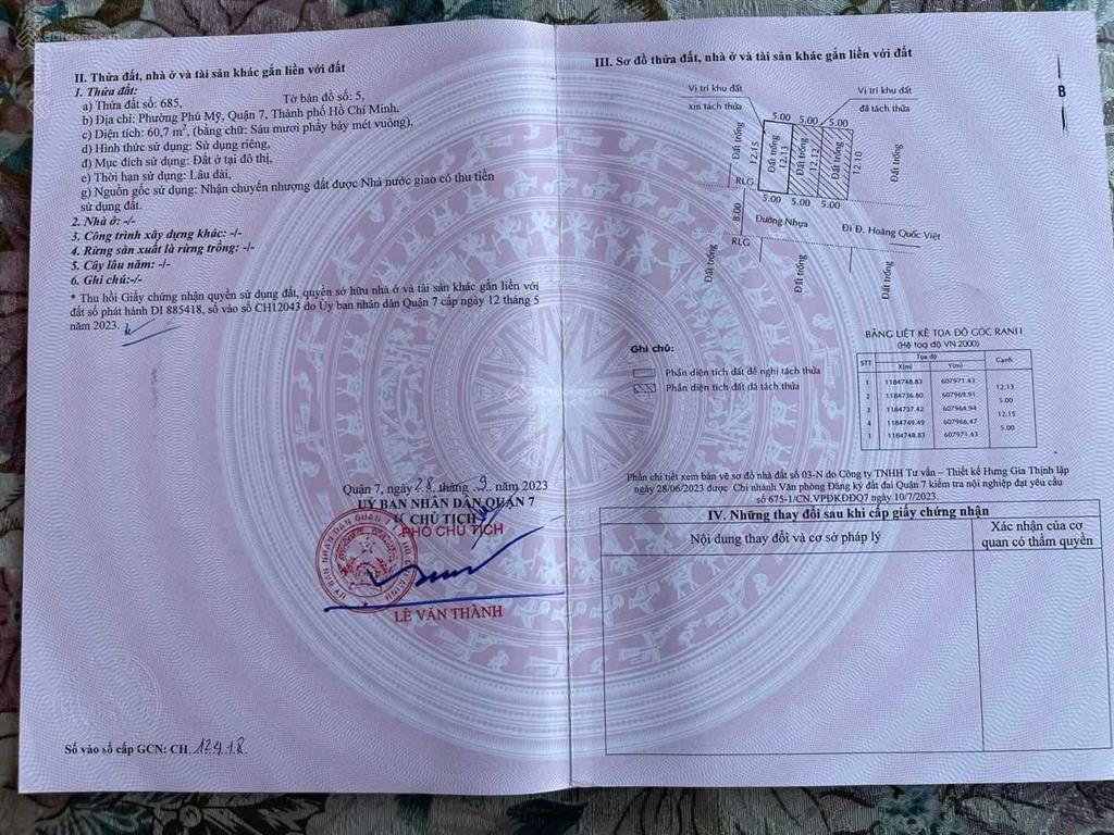 Bán lô đất vuông đẹp đường Hoàng Quốc Việt, P. Phú Mỹ, Quận 7.