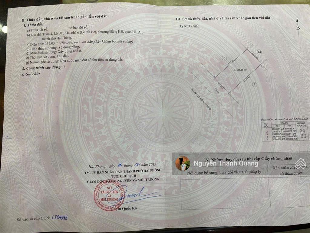 Bán lô đất đẹp mặt đường đường Lê Hồng Phong, phường Đằng Hải, quận Hải An, Hải Phòng.