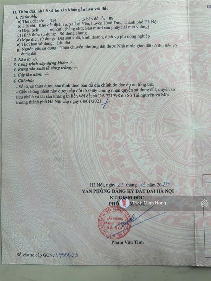 Chính chủ gửi em hồng lô đất dịch vụ xã Lại yên cần bán.