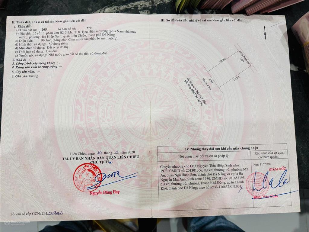 - Vị trí đẹp, ngang 7m diện tích 96.3 m² hướng tây nam... Đối Lưng Quốc lộ 1a (nguyễn lương bằng) thuộc phường Hải Vân.. Sát trục thông Đàm thanh 10! Thông thẳng nguyễn tất thành....