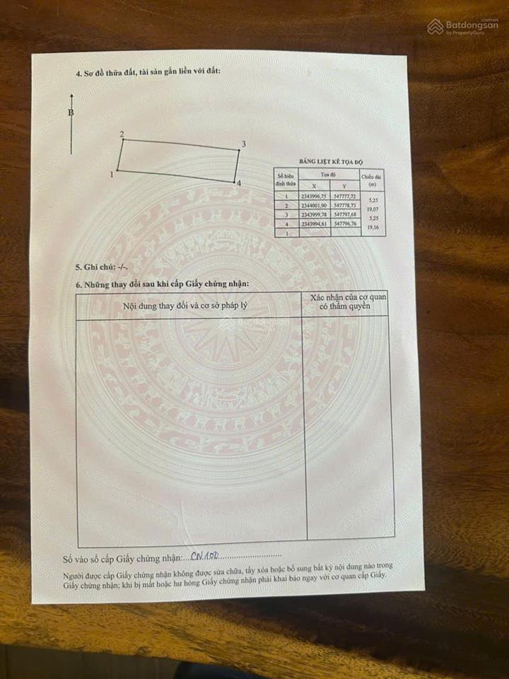 Lô DT 100m², mặt tiền to 5,25m.