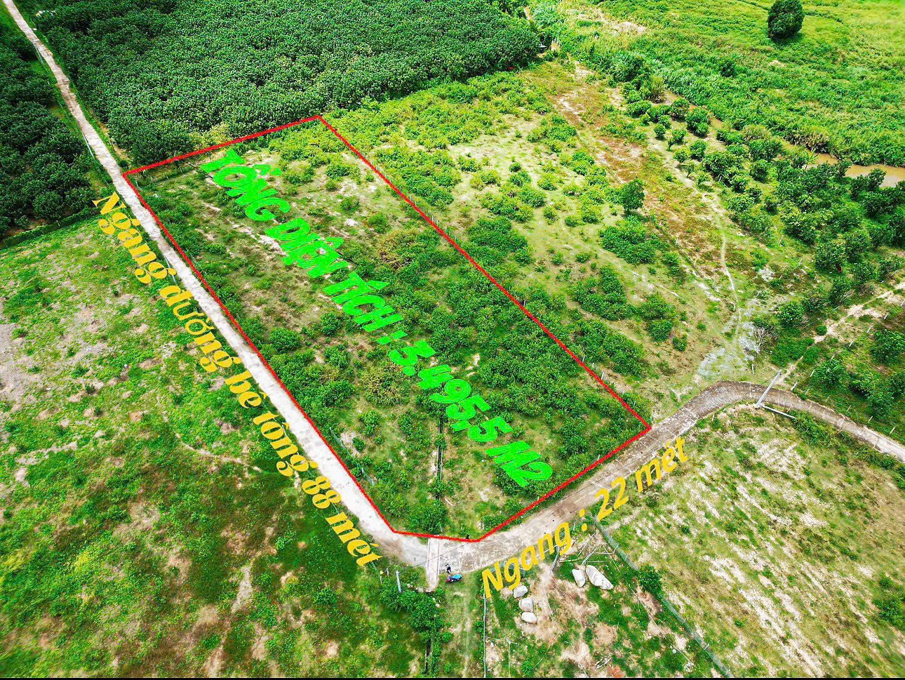 Diện tích: 3495,5m2 (ngang 88m)