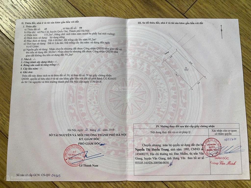 Tôi cần nhượng lại lô góc 153m² mặt đường Vai Réo - Phú Cát (đi 50m tới khu CNC 2 Hòa Lạc).