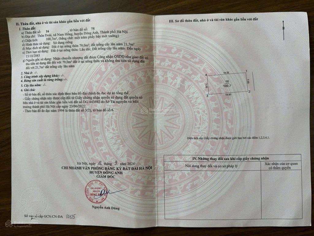 Bán mảnh đất Thôn Đoài, Nam Hồng, Đông Anh, Hà Nội.
