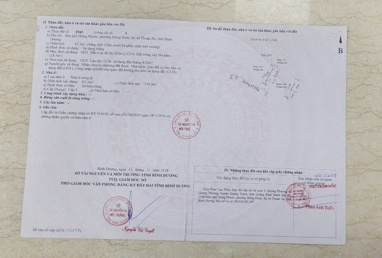 Bán nhà 1 trệt 1 lầu hoàn công đầy đủ ở 1/Nguyễn Hữu Cảnh - Hưng Định - Thuận An - Bình Dương