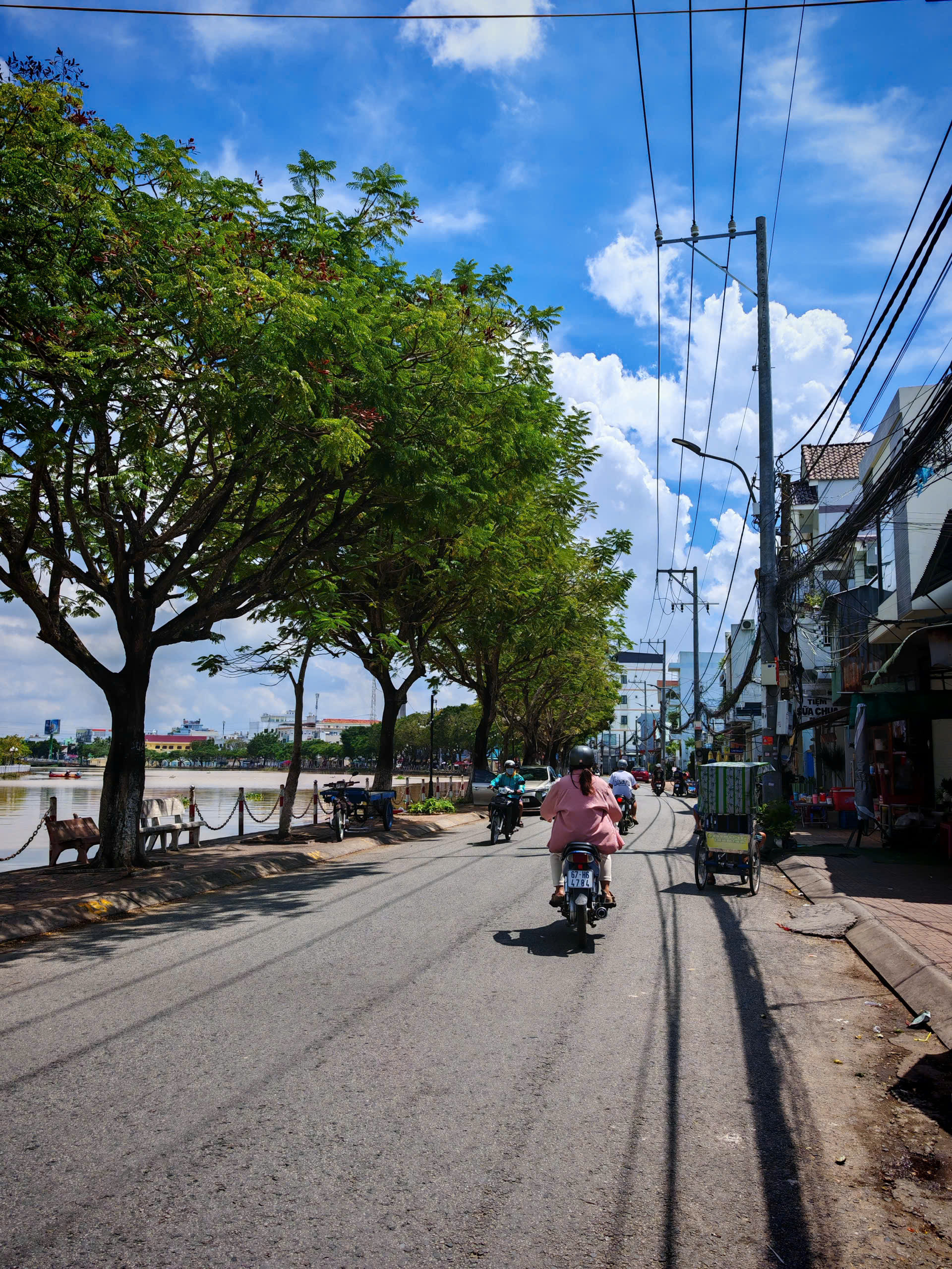 View bờ kè mát mẻ, không gian thoáng đãng.