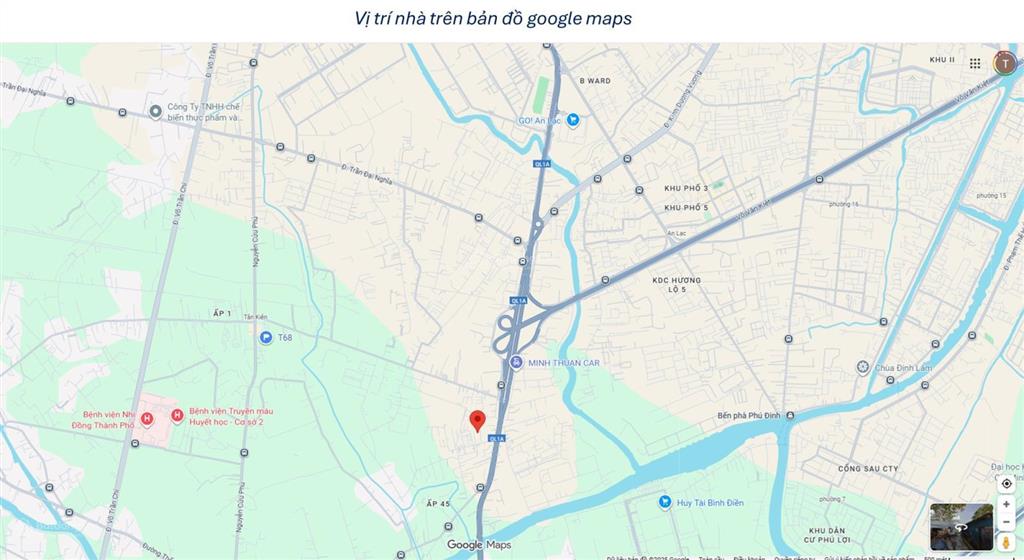 * Lô đất tọa lạc trên con đường hiện hữu 8m, quy hoạch mở rộng lên 12m, thông thẳng ra đường Lê Khả Phiêu (QL1A) và cách đại lộ Võ Văn Kiệt chỉ vài phút di chuyển. Vị trí này không chỉ thuận lợi cho việc đi lại mà còn nằm ngay khu vực Bình Chánh đang phát triển sôi động.