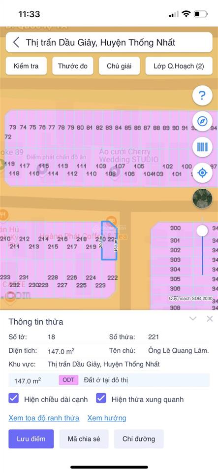 - Vị trí: Thửa đất số 221, TBĐ 18, thị trấn Dầu Giây, Thống Nhất, Đồng Nai.