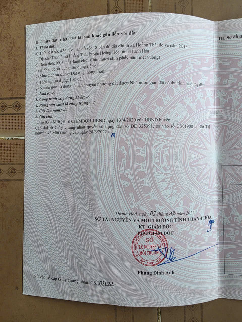 - Vị trí: Lô 03 MBQH03a ( Hoằng thái cũ ) Hoằng Lộc bây giờ, ngay Nhà Văn Hóa Thôn 3 cách Trường cấp 1 và cấp 2 Hoằng Thịnh 150m, UBND Xã Hoằng Lộc 450m, cách Chợ Hoằng Thái cũ 350m