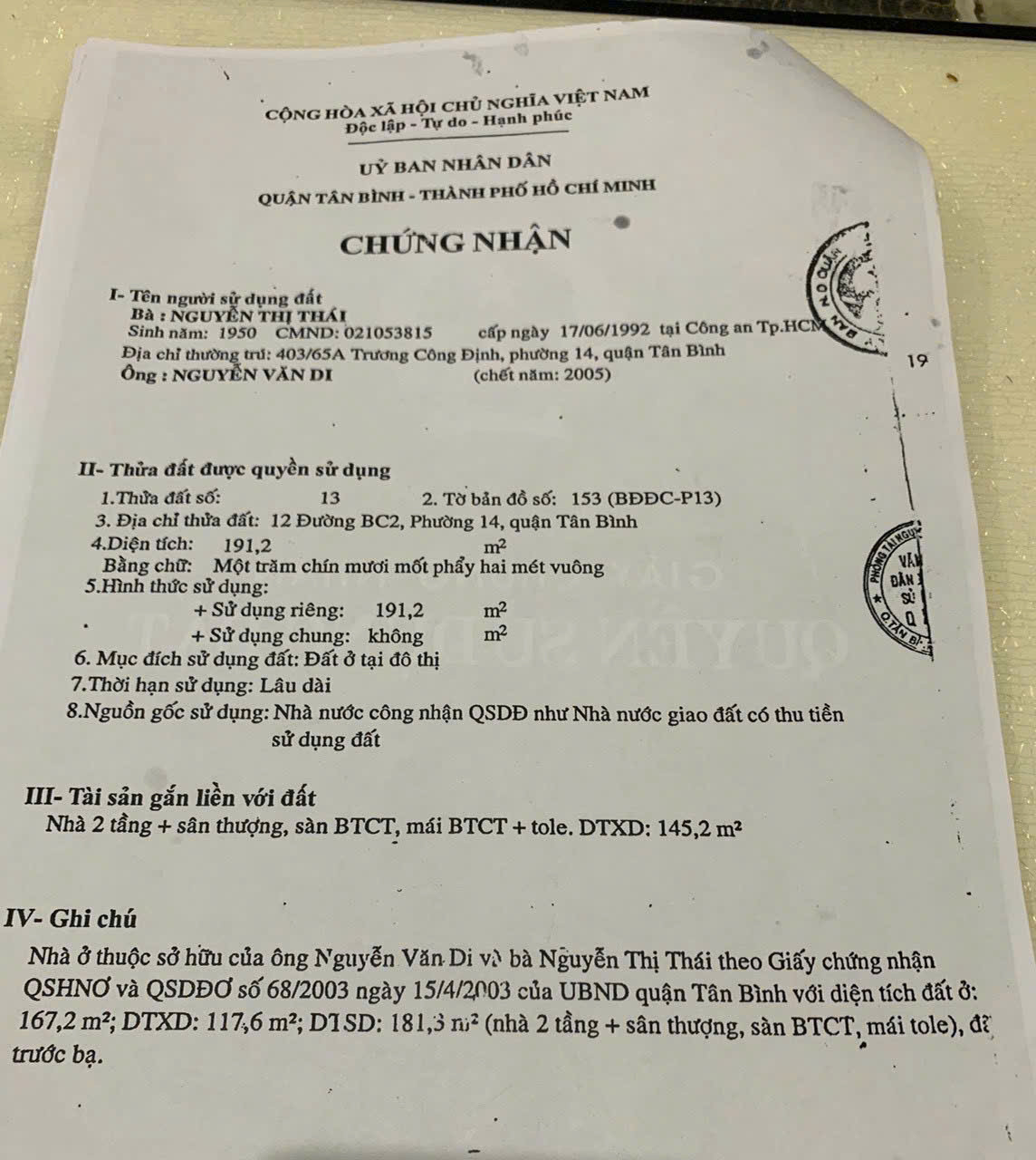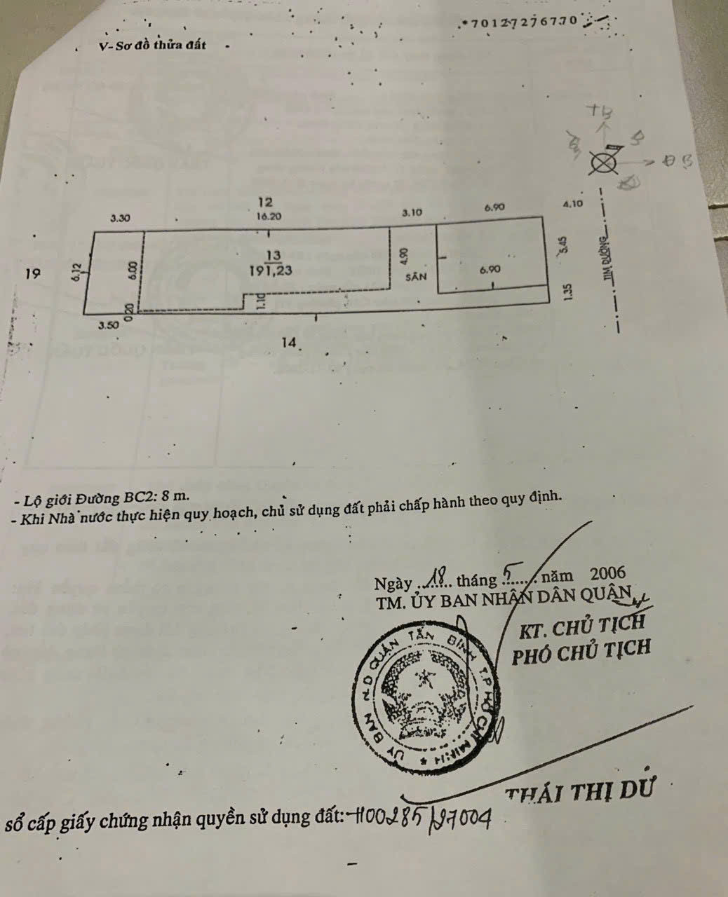 Diện Tích Công Nhận: 191.2m2