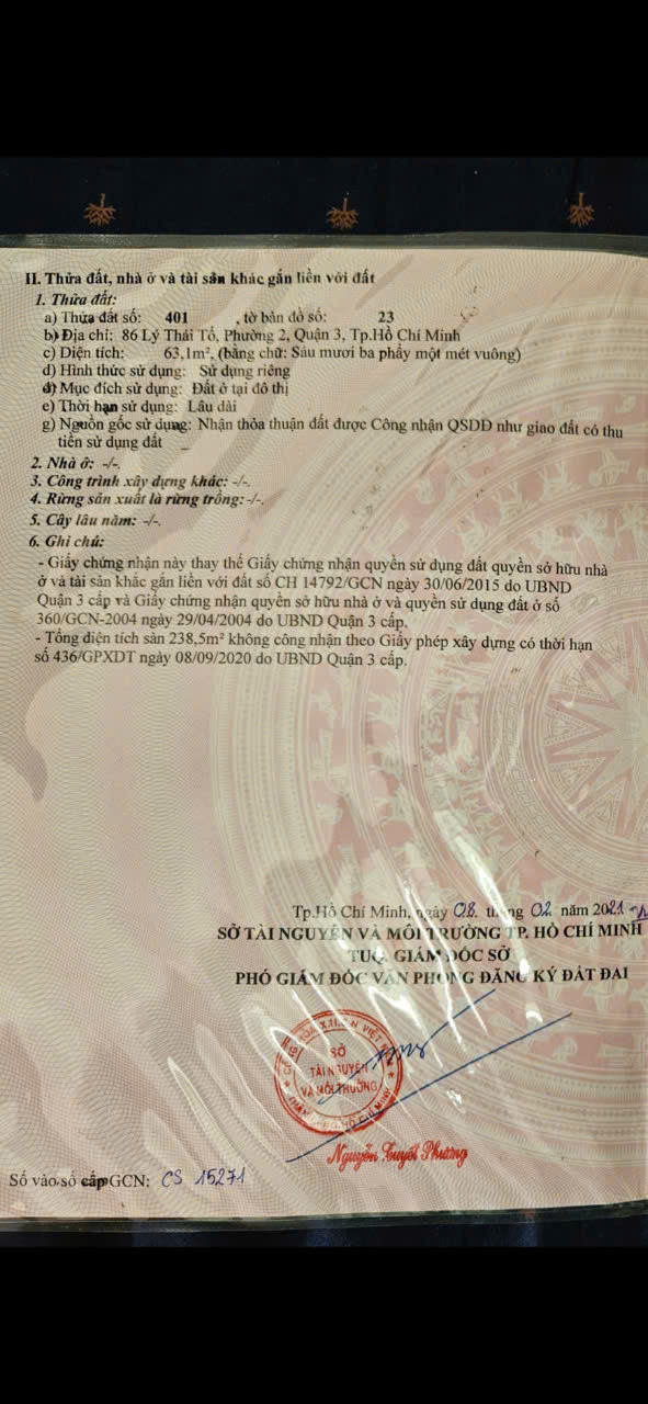 Bán Nhà Mặt Tiền 86 Lý Thái Tổ, Phường 2, Quận 3