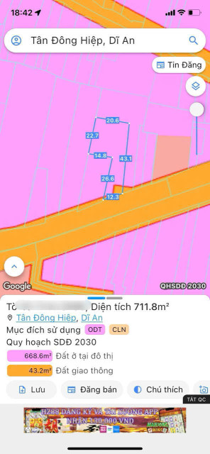 BÁN NHÀ MẶT TIỀN KINH DOANH 712m² – ĐƯỜNG ĐT743A, TÂN ĐÔNG HIỆP, DĨ AN