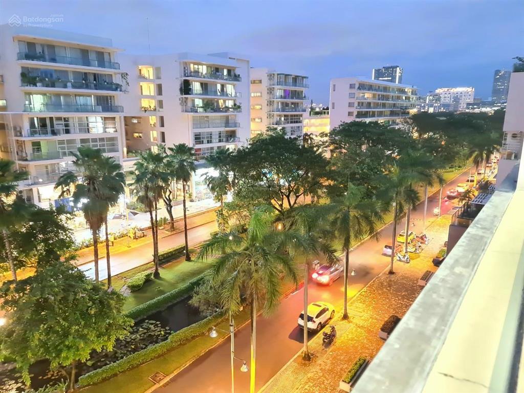 Nhà hướng Nam mát mẻ, view nội khu và view kênh đào Tôn Dật Tiên, diện tích 150m² thiết kế 3PN, 2 toilet, full nội thất cao cấp, ban công rộng thông suốt phòng khách và 3 phòng ngủ.