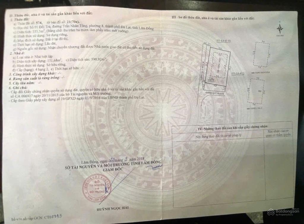 Diện tích: 335m² (2 mặt tiền)