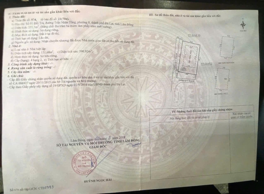 Diện tích: 335m² (2 mặt tiền)