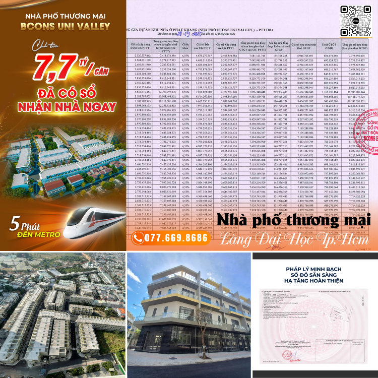 👉 BCONS UNI VALLEY – Nhà phố thương mại giữa lòng thung lũng tri thức phía Đông Sài Gòn, Giá 7.5 tỷ/căn, chỉ còn 91 căn