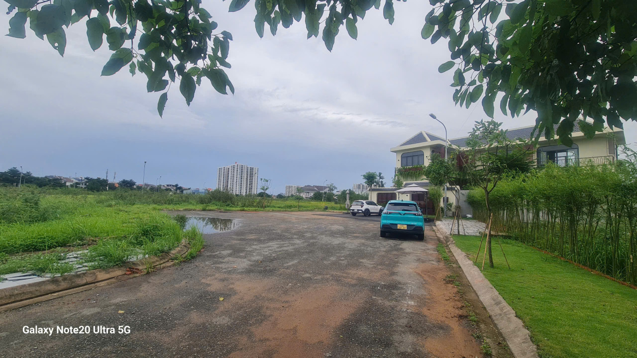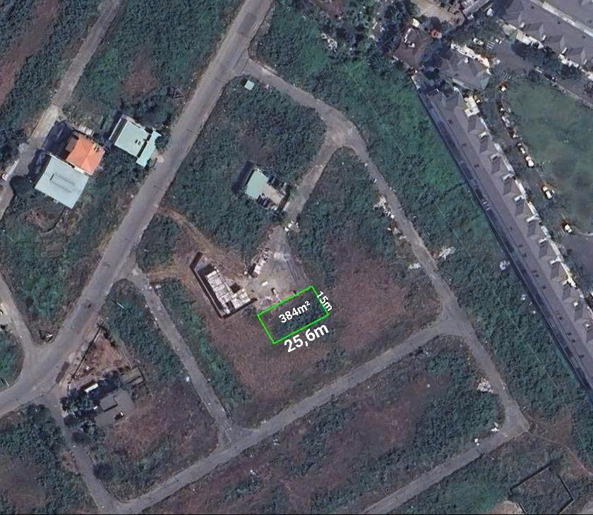 Ngang 25,6mx15m, tổng 384m² full đất OĐT sân trước mặt rộng 500m². Nằm trong trung tâm của dự án.