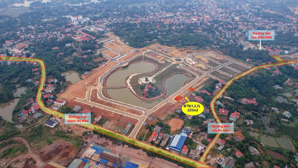 -Bao quanh là hệ thống bệnh viện, trường học, trung tâm hành chính, chợ trung tâm, KCN Cẩm Khê và cụm CN Sông Thao.