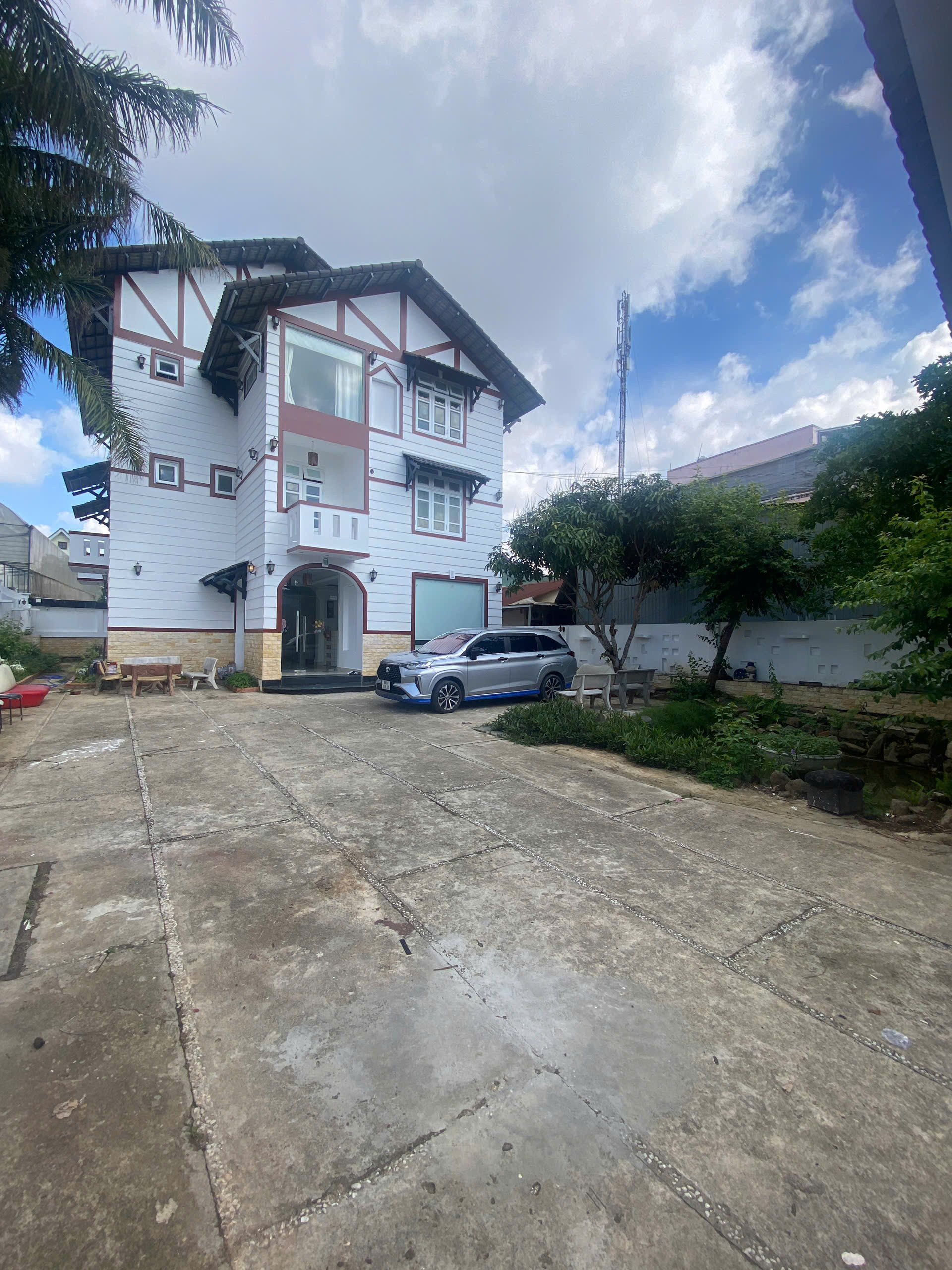 Sân đậu xe rộng rãi, có sân vườn, tiểu cảnh. Thích hợp gia đình ở định cư lâu dài hoặc kinh doanh khách sạn, Homestay.....
