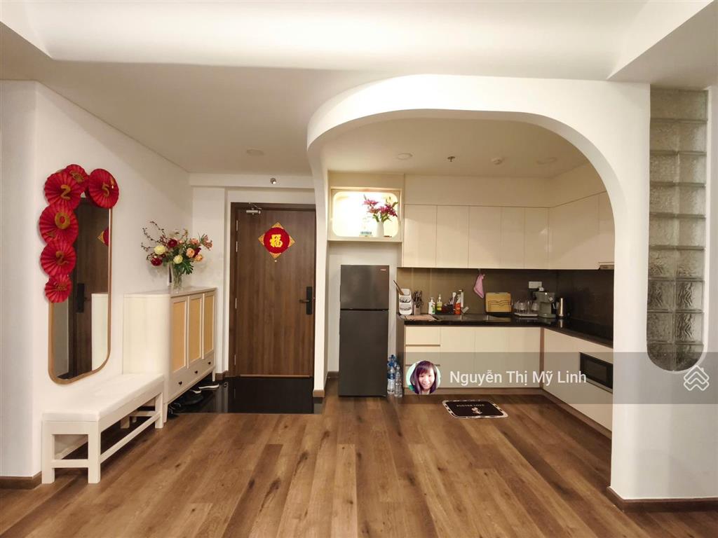 * Căn hộ bàn giao hoàn thiện cơ bản có: Sàn gỗ, bếp điện từ, hệ tủ bếp trên và dưới, máy hút mùi, video call.