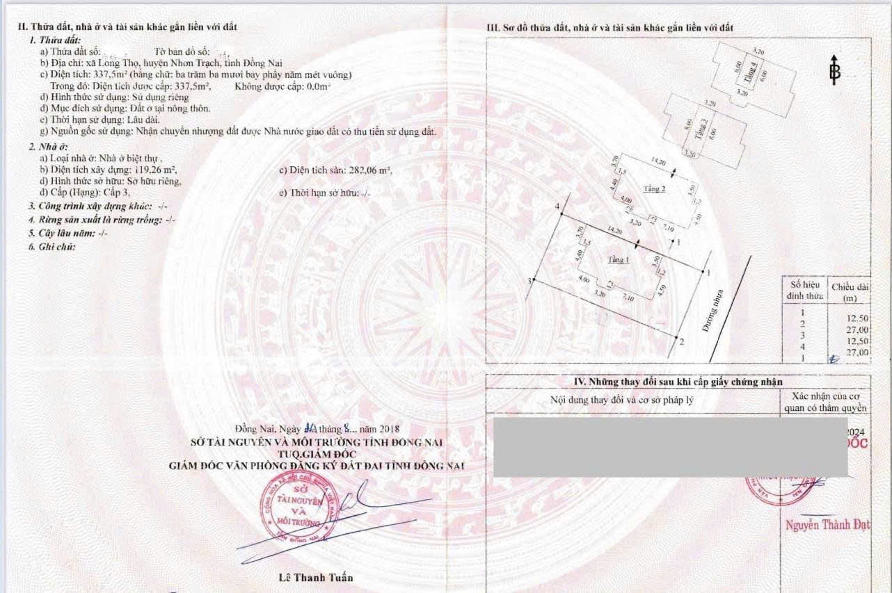- Diện tích đất : 337,5 m2 ( 12,6m x 27m )