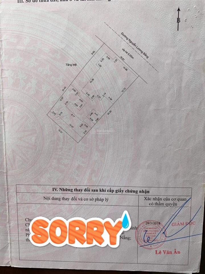 Cần bán lô đất mặt tiền đường Nguyễn Lương Bằng, phường Hoà Hiệp Nam, Quận Liên Chiểu, Tp. Đà Nẵng.