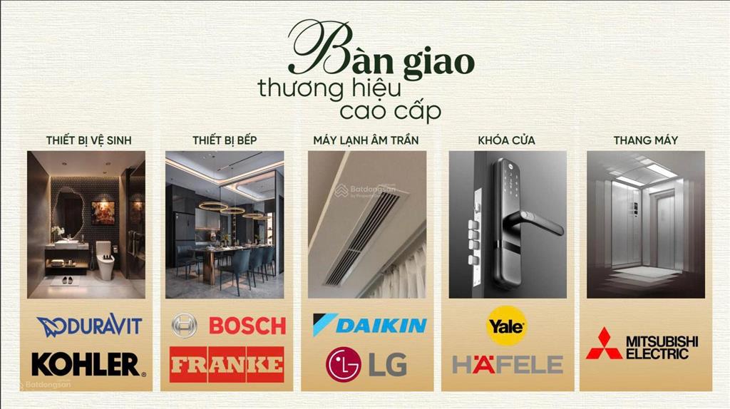 - Thiết bị bàn giao cao cấp với các thương hiệu lớn như: yale, hafele, Kohler, Bosch