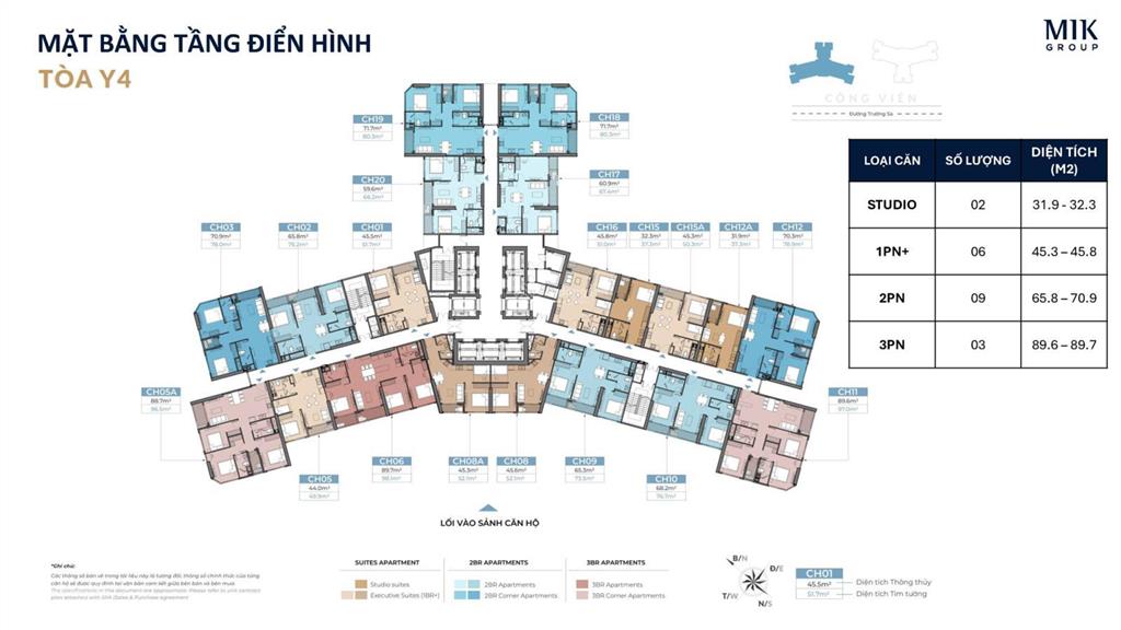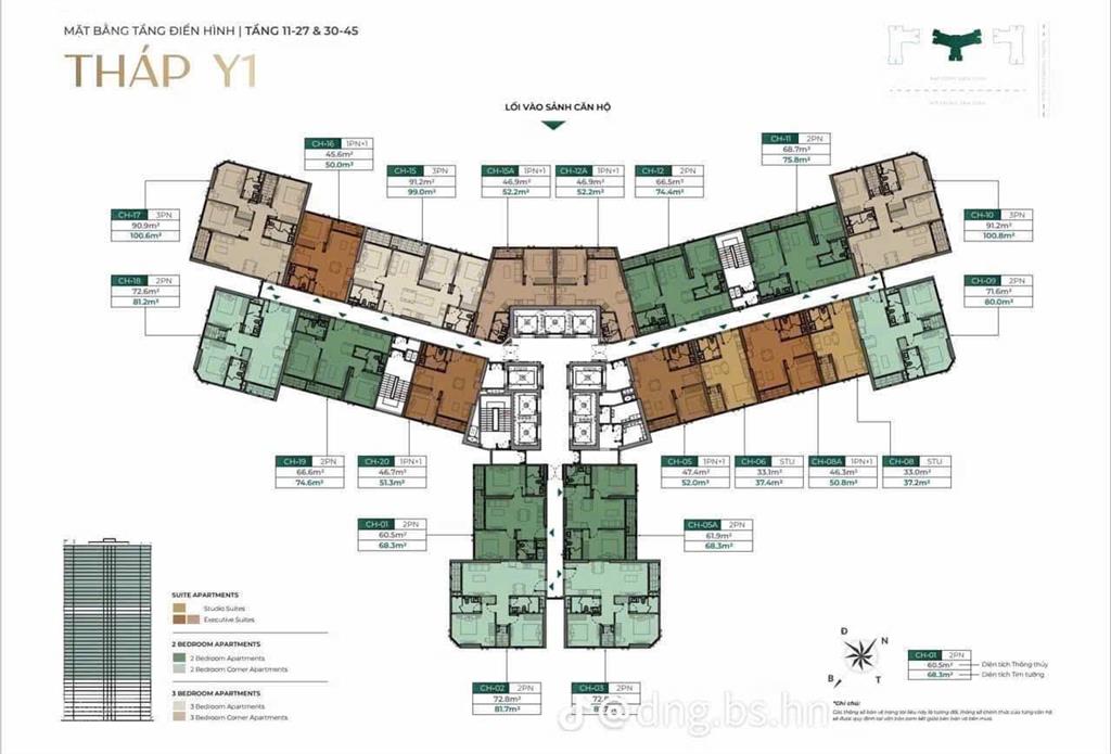 toà Y4 tầng 3x căn 03 thiết kế 2ngủ Diện tích 72,3m². Hướng TB-ĐB
