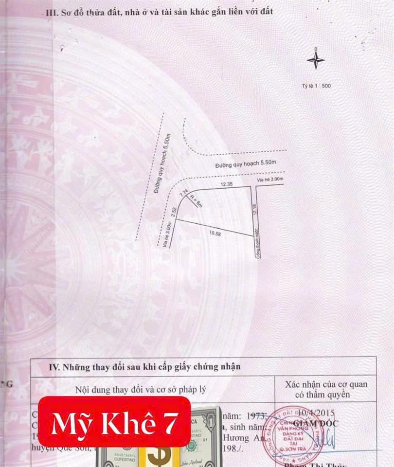 Chào bán lô góc 2 mặt tiền Đường MỸ KHÊ 7