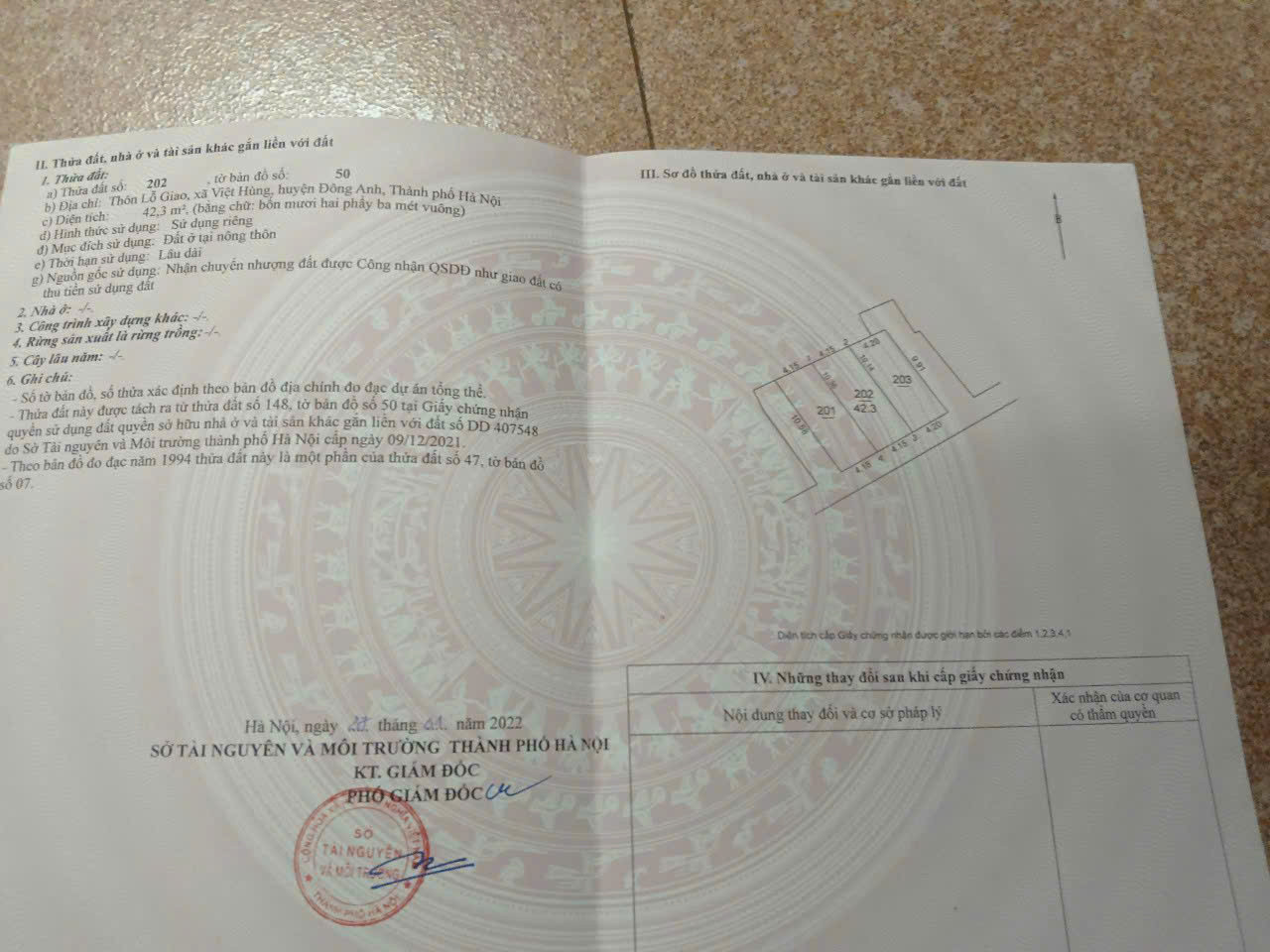 - Diện tích: 42.3m2 Full thổ cư, khổ đất đẹp vuông vắn, MT=MH=4.15m