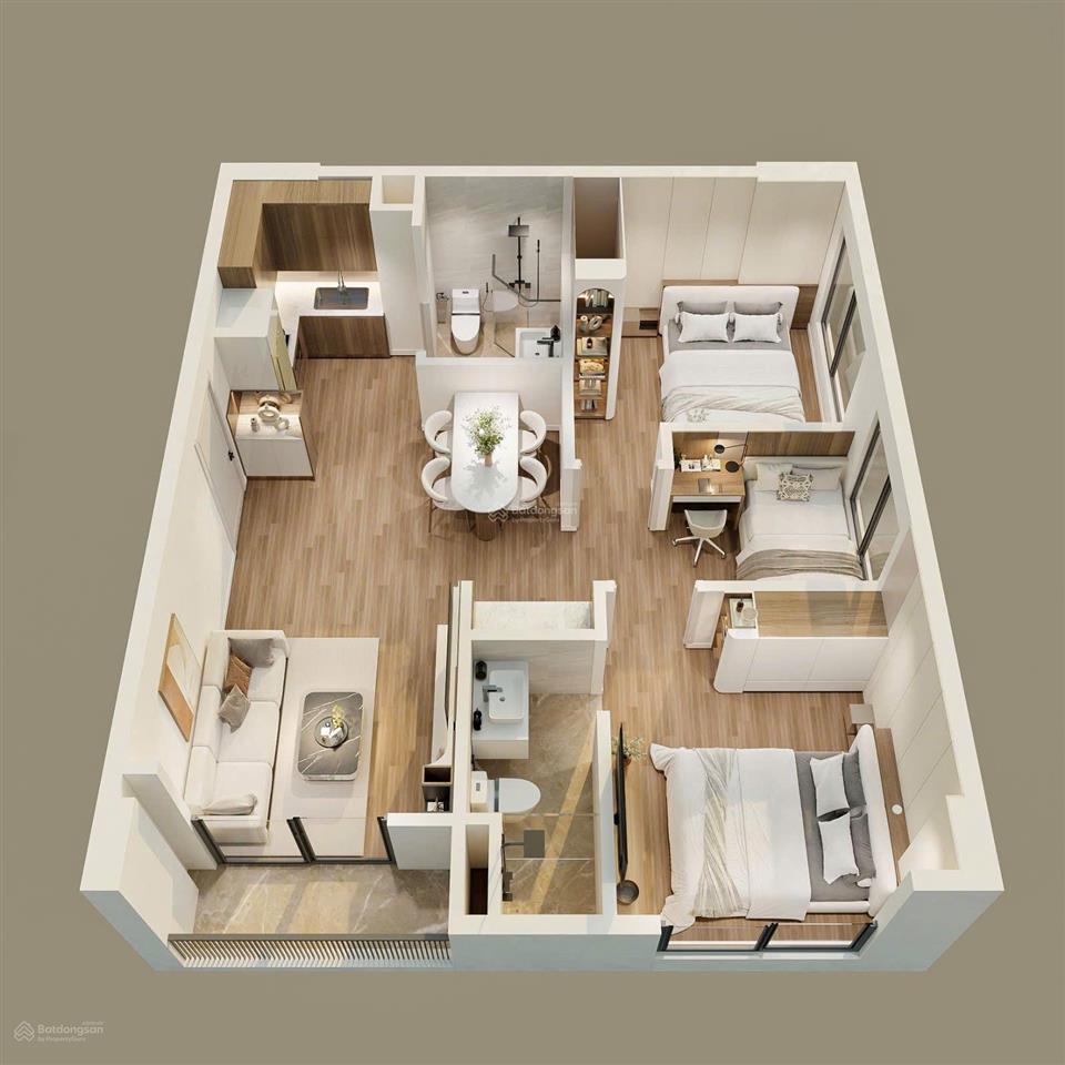 Thiết kế: 2 phòng ngủ 1/2 vệ sinh tùy loại, tối ưu công năng.