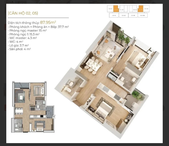 -Diện tích căn hộ: 67 – 93 m² (2PN – 2PN+ – 3PN, Duplex)