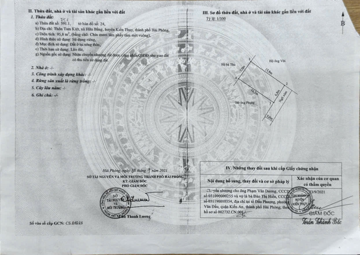 Chính chủ bán 95.8m đất ở. Sẵn sổ đỏ. Mặt tiền rộng 6.8m, Nở Hậu