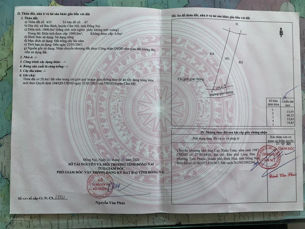 1 sao vườn mít Bảo Bình. Đất đỏ bazan cách nhưa Xuân Mỹ - Bảo Bình 250m 1 ty LH A Nhât .
