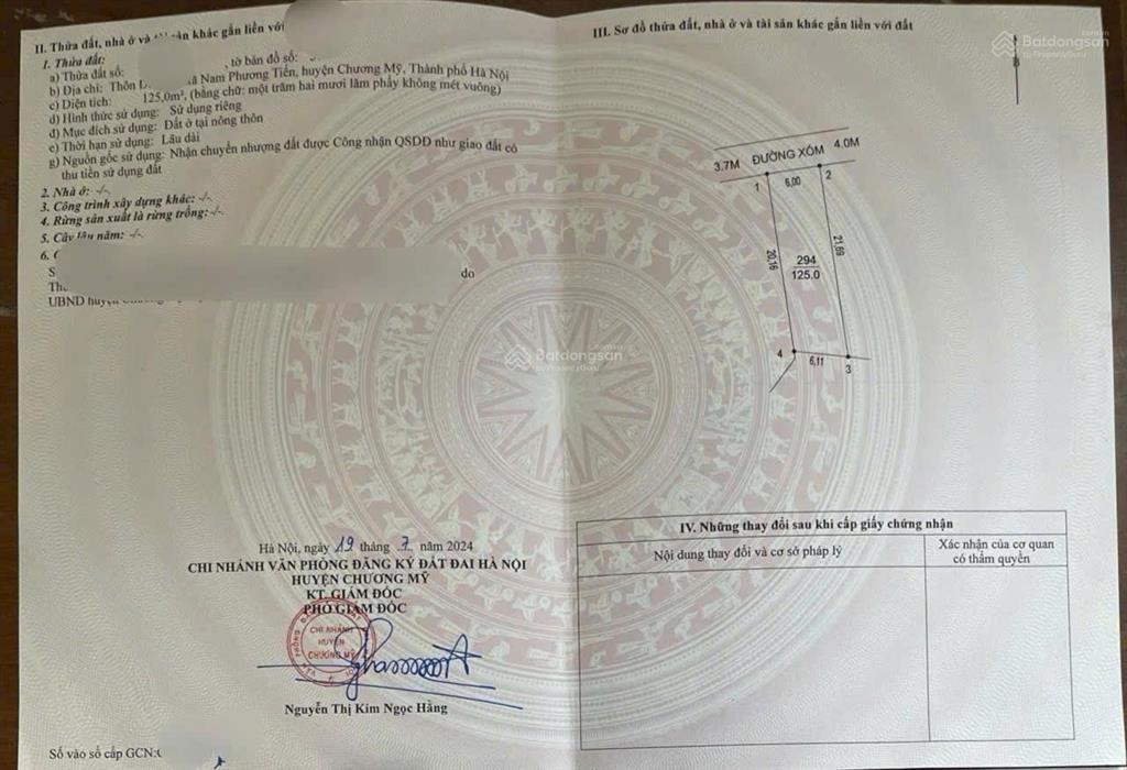 Diện tích: 125m² full thổ cư, Mặt tiền 6m nở hậu