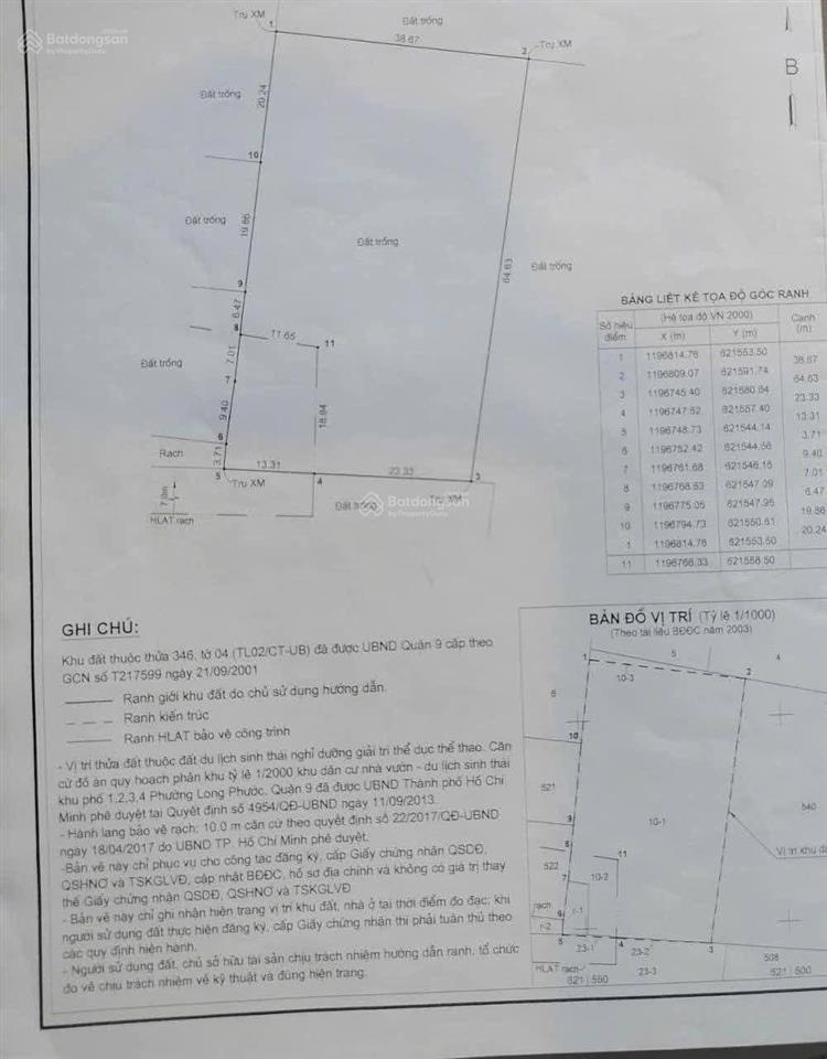 Diện tích: 40m x 62m, có 4 m mặt tiền rạch. Đất Quy hoạch khu dân cư nhà vườn. Pháp lý rõ ràng sổ hồng.