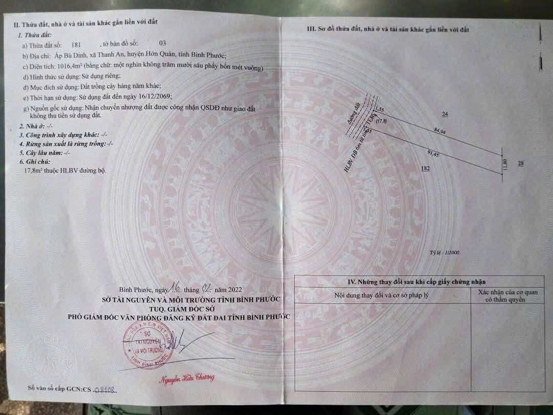 * Diện tích: 1000m² (ngang 12m, dài 90m)