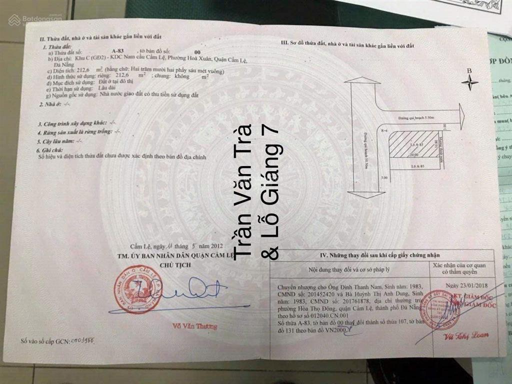 Chính chủ gởi bán 2 Mặt Tiền đường Trần Văn Trà Hoà Xuân Đà Nẵng.