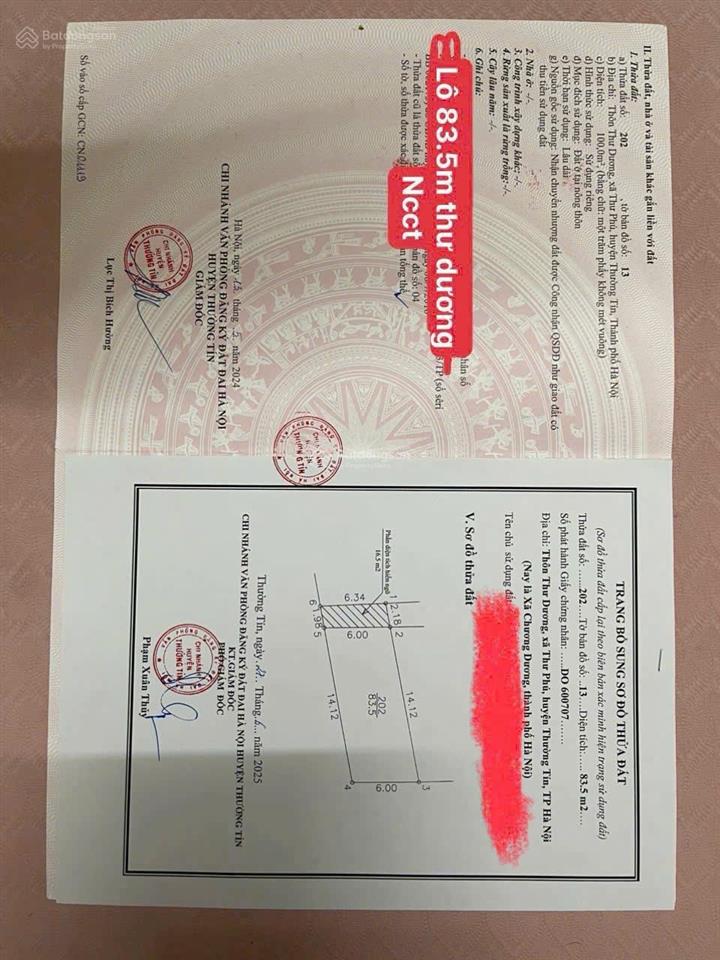 Dt 83.5m :mặt tiền + hậu = 6m