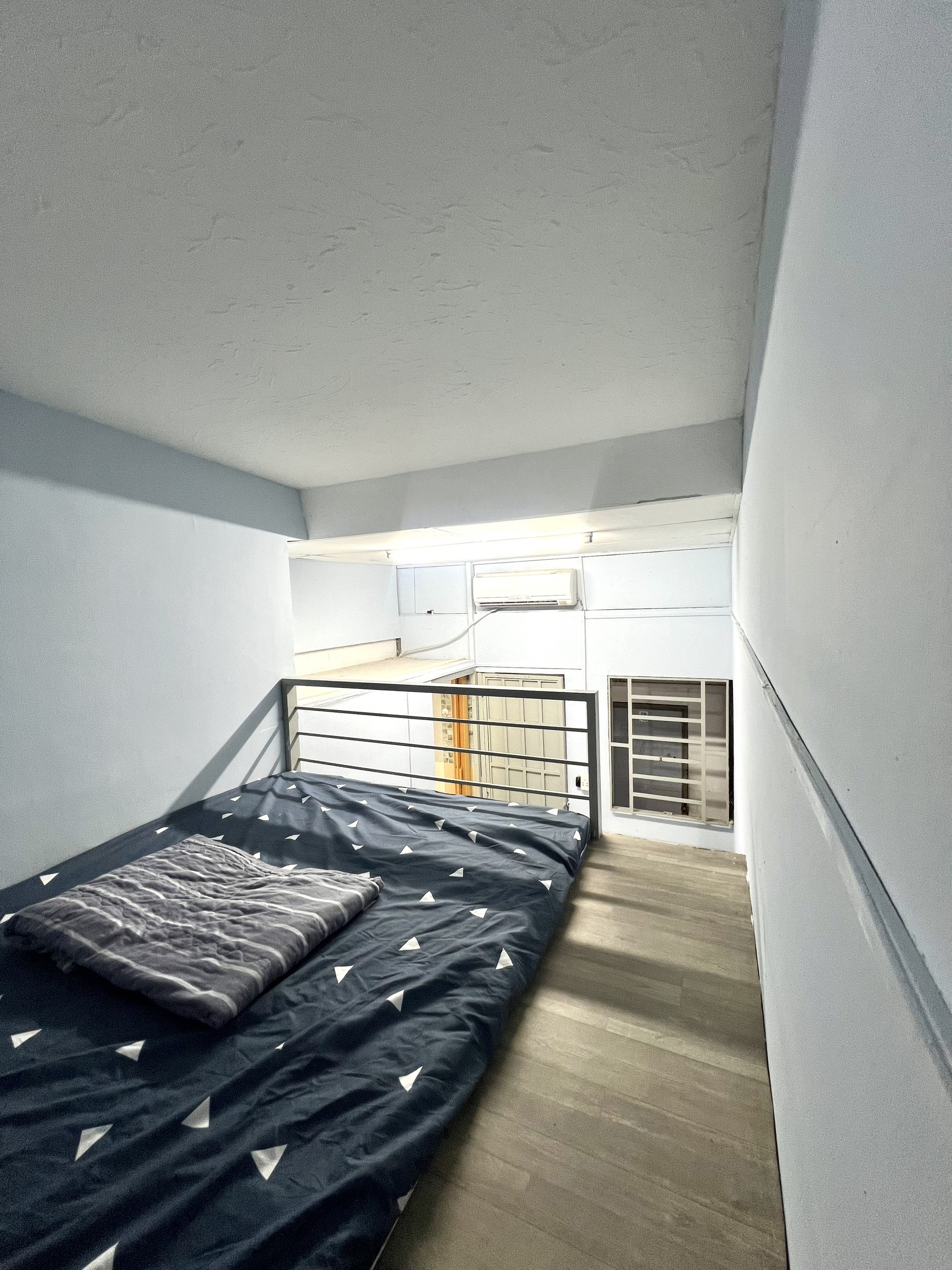 Phòng riêng có toilet riêng, gác lửng, ban công, cửa sổ lớn đón gió và ánh sáng tự nhiên.