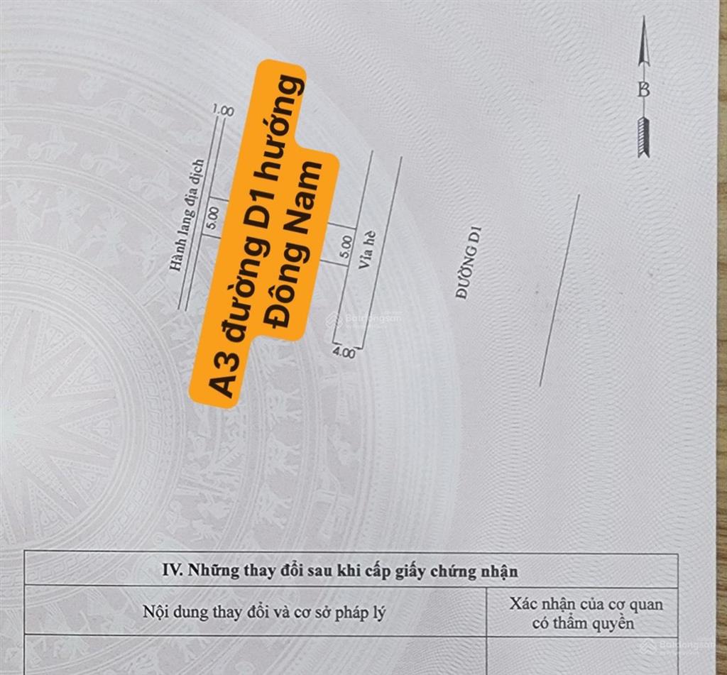Lô 1,2: Đất nền ở đường lớn nhất dự án D1, đường trục chính 2 làn đường 32m, diện tích 100m² (5*20m). Hướng Tây. Vị trí lô A1, A4 -... Giá từ 5tyx.