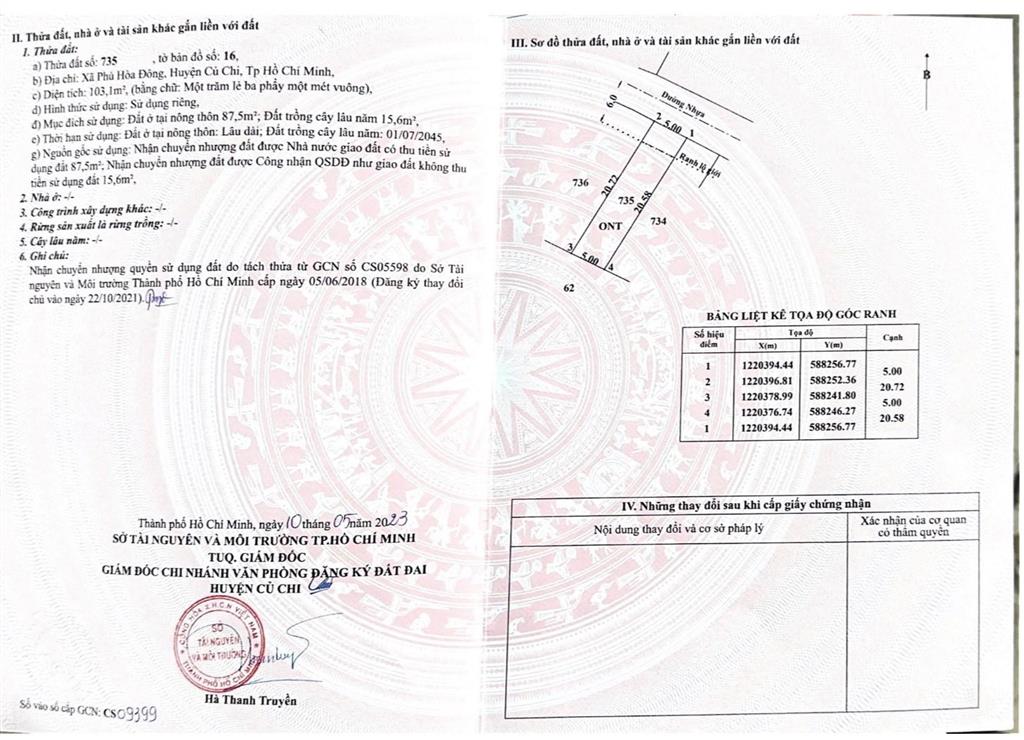 Diện tích: 103m² (5x21m), 88m² thổ cư còn lại là đất trồng cây lâu năm